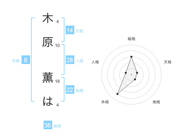 木原 薫はさんの天格は14画の1点!