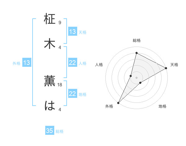 柾木 薫はさんを姓名の画数から五運を鑑定