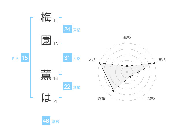 梅園 薫はさんの天格は24画の5点!
