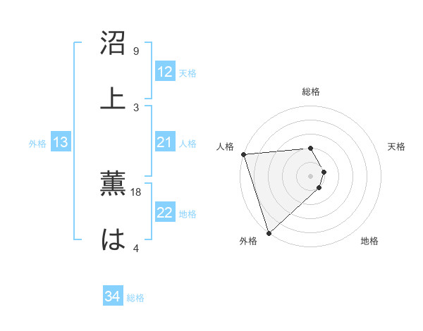 沼上 薫はさんを姓名の画数から五運を鑑定