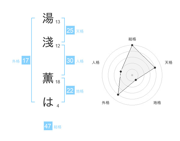 湯淺 薫はさんの総格は47画の5点!