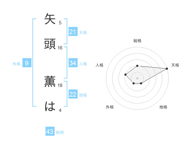 矢頭 薫はさんを姓名の画数から五運を鑑定
