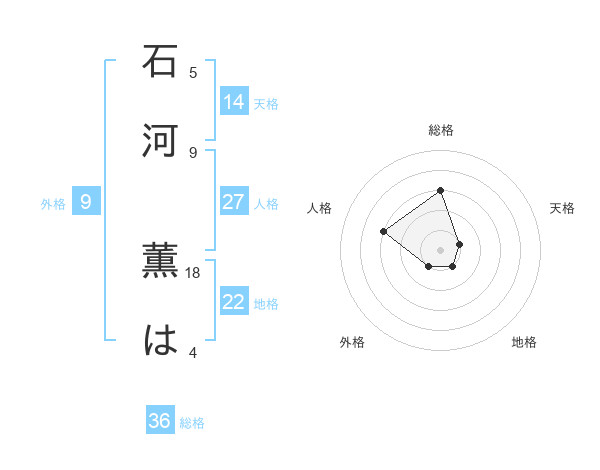 石河 薫はさんの総格は36画の3点!