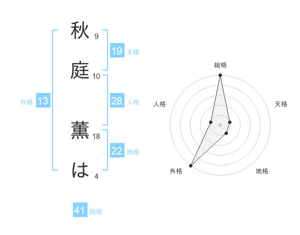 秋庭 薫はさんの外格は13画の5点!