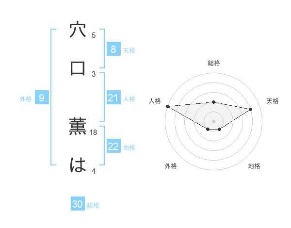 穴口 薫はさんの総格は30画の2点!