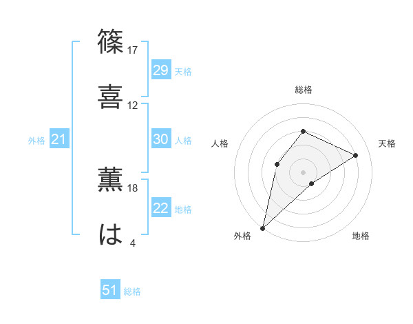 篠喜 薫はさんの総格は51画の3点!