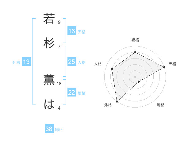 若杉 薫はさんの総格は38画の4点!