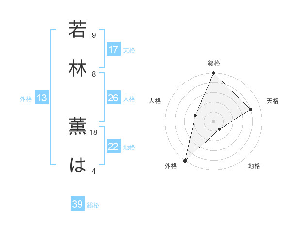 若林 薫はさんの外格は13画の5点!