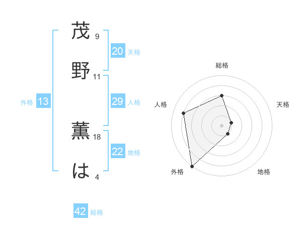 茂野 薫はさんの外格は13画の5点!