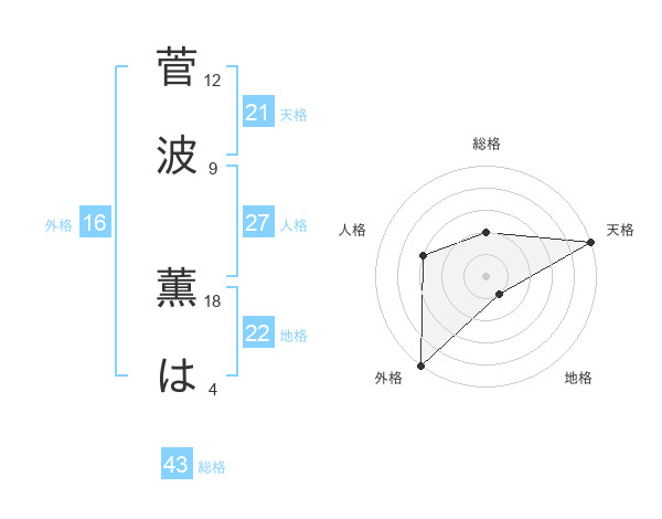 菅波 薫はさんの天格は21画の5点!