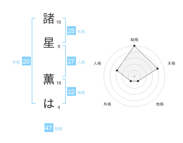 諸星 薫はさんを姓名の画数から五運を鑑定