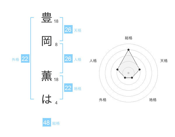 豊岡 薫はさんの天格は26画の2点!