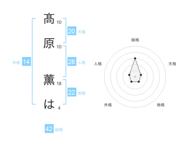 髙原 薫はさんの総格は42画の3点!