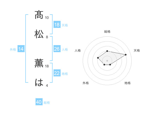 髙松 薫はさんの天格は18画の4点!