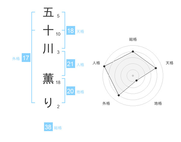 五十川 薫りさんの総格は38画の4点!