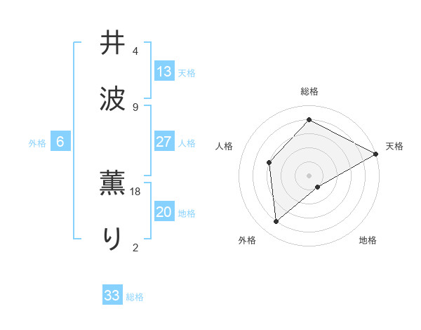 井波 薫りさんの総格は33画の4点!