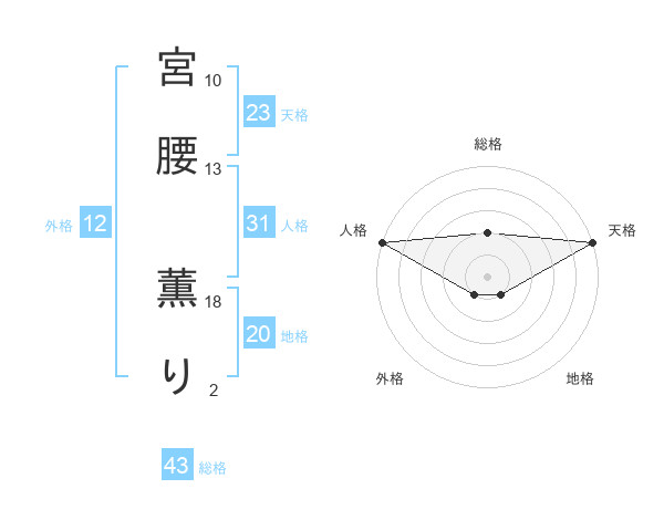 宮腰 薫りさんを姓名の画数から五運を鑑定