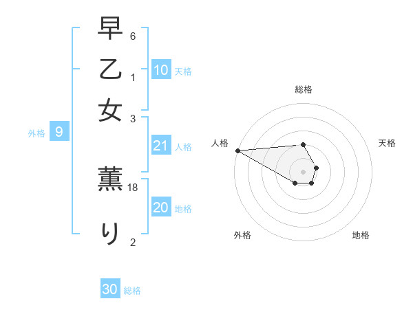 早乙女 薫りさんの地格は20画の1点!