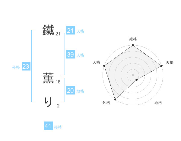 鐵 薫りさんの天格は21画の5点!