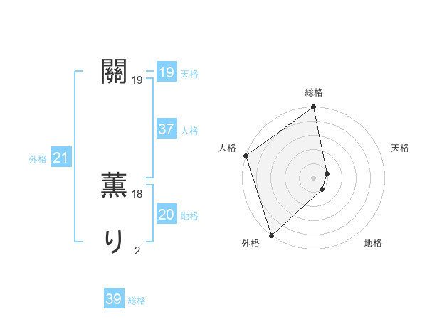 關 薫りさんの外格は21画の5点!