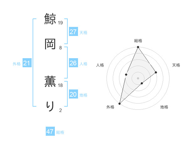 鯨岡 薫りさんの総格は47画の5点!