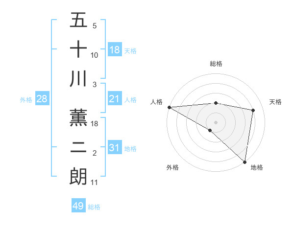 五十川 薫ニ朗さんを姓名の画数から五運を鑑定