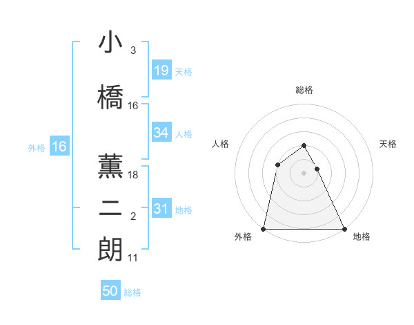小橋 薫ニ朗さんの総格は50画の2点!