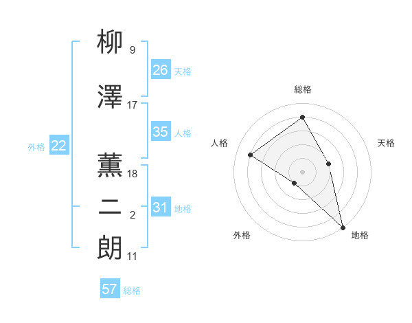 柳澤 薫ニ朗さんの総格は57画の4点!