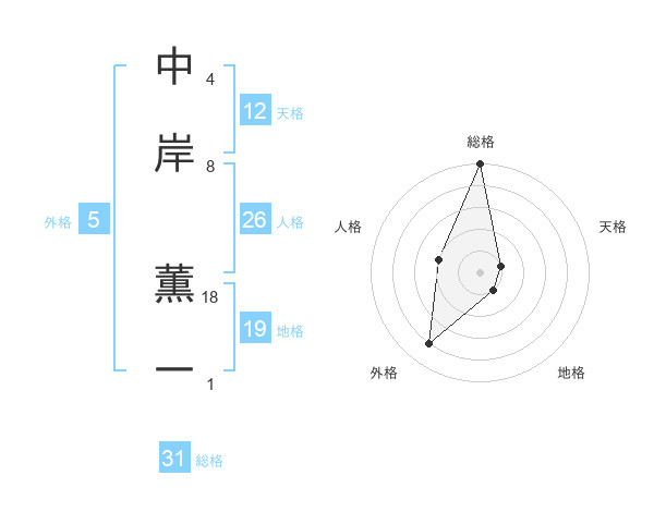中岸 薫一さんの総格は31画の5点!