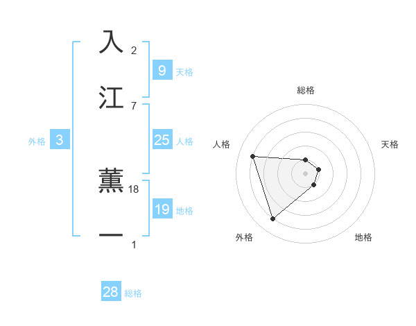 入江 薫一さんの総格は28画の1点!