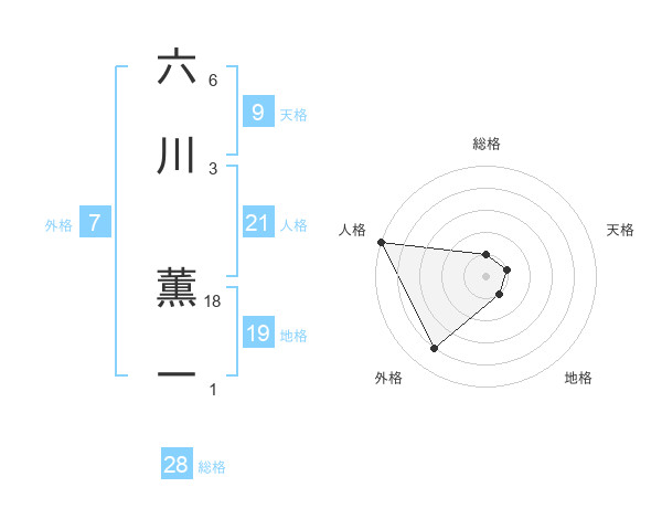 六川 薫一さんの外格は7画の4点!
