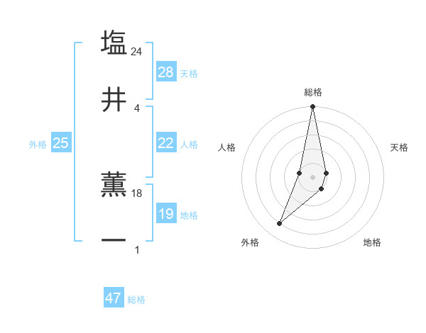 塩井 薫一さんの総格は47画の5点!