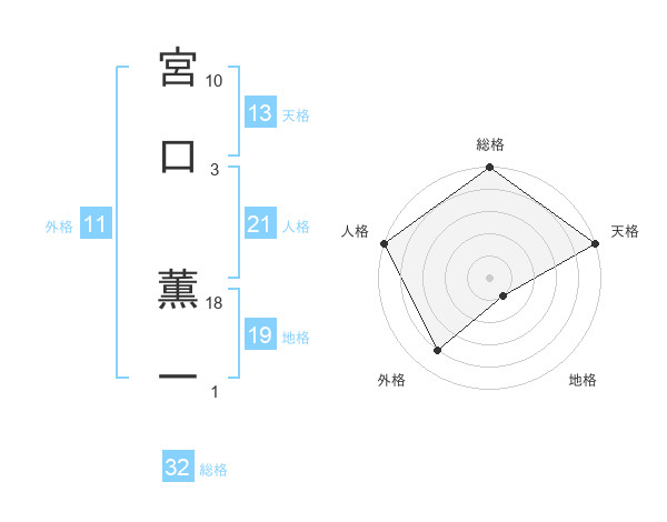 宮口 薫一さんを姓名の画数から五運を鑑定