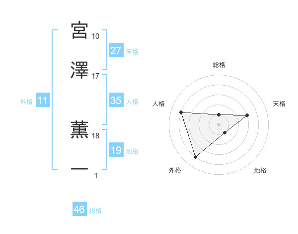 宮澤 薫一さんの外格は11画の4点!