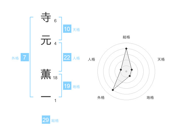 寺元 薫一さんの総格は29画の4点!