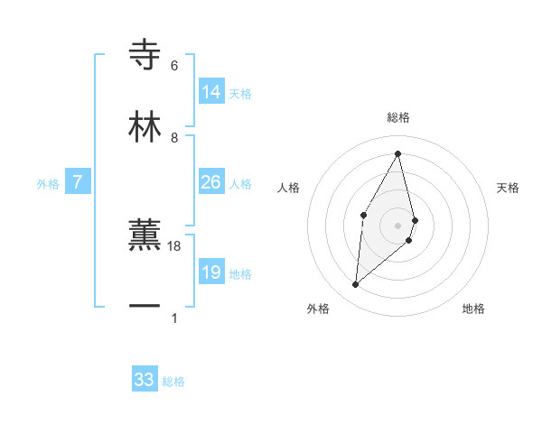 寺林 薫一さんの総格は33画の4点!