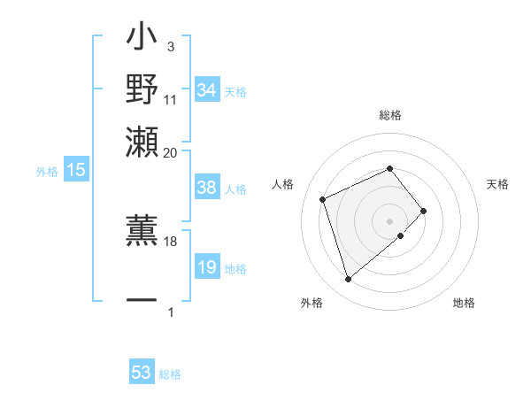 小野瀬 薫一さんを姓名の画数から五運を鑑定