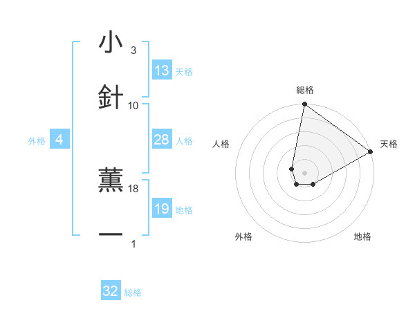 小針 薫一さんの総格は32画の5点!
