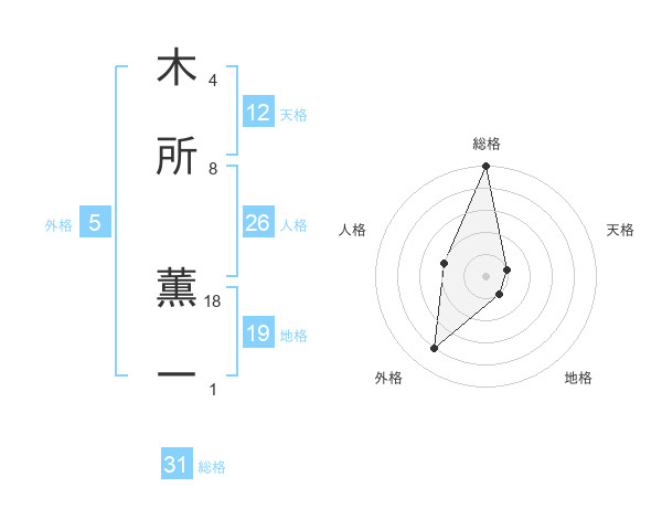 木所 薫一さんの総格は31画の5点!
