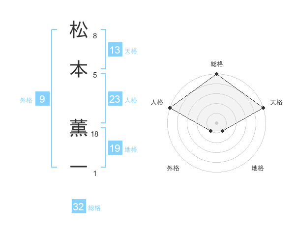 松本 薫一さんの総格は32画の5点!