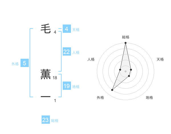 毛 薫一さんの総格は23画の5点!
