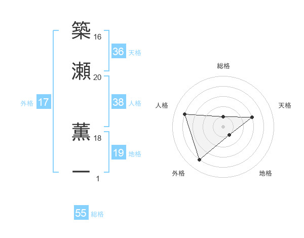 築瀬 薫一さんの総格は55画の1点!