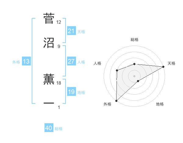 菅沼 薫一さんを姓名の画数から五運を鑑定
