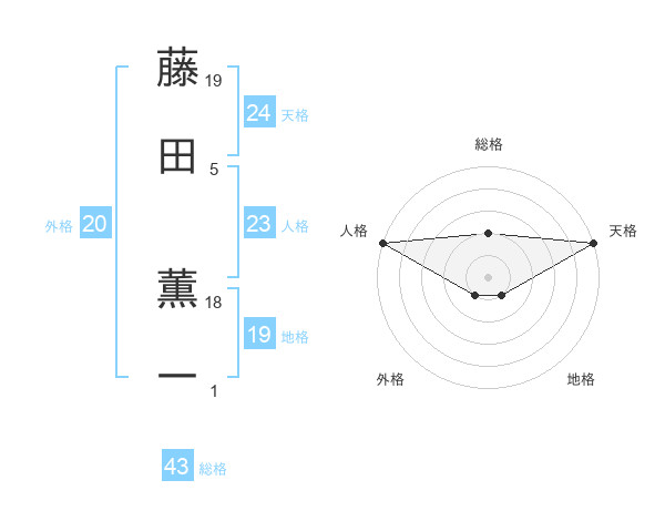 藤田 薫一さんを姓名の画数から五運を鑑定