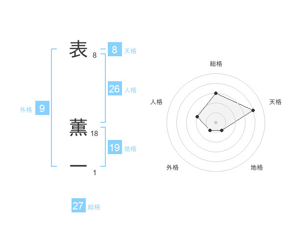表 薫一さんの総格は27画の3点!