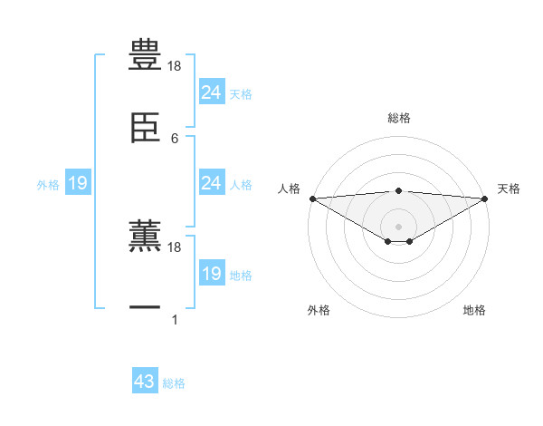 豊臣 薫一さんの天格は24画の5点!