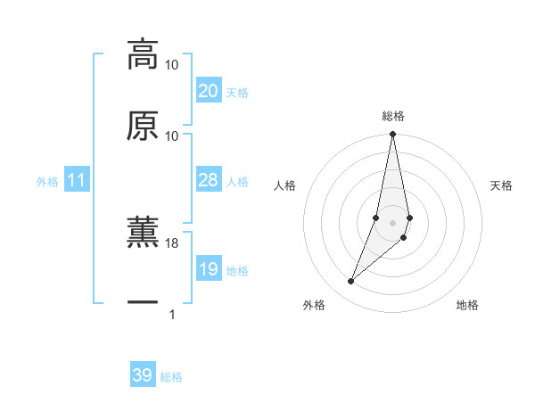 高原 薫一さんの総格は39画の5点!