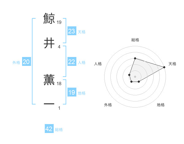鯨井 薫一さんの天格は23画の5点!