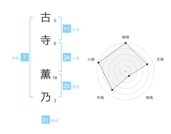 古寺 薫乃さんの総格は31画の5点!