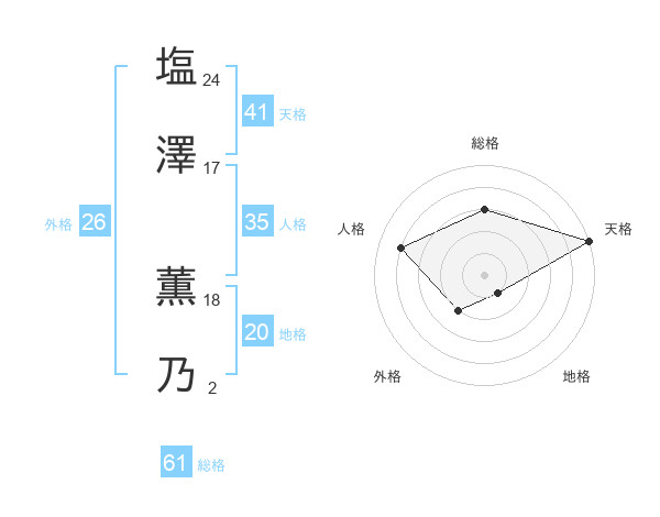 塩澤 薫乃さんを姓名の画数から五運を鑑定